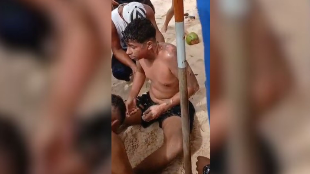 O jovem teve ferimentos nas mãos, braços, ombros, pescoço e rosto. Ele recebeu os primeiros socorros ainda na praia e, em seguida, foi levado de ambulância para um hospital da região. Durante o trajeto, o pai da vítima revelou também ter sofrido queimadura em uma das orelhas.