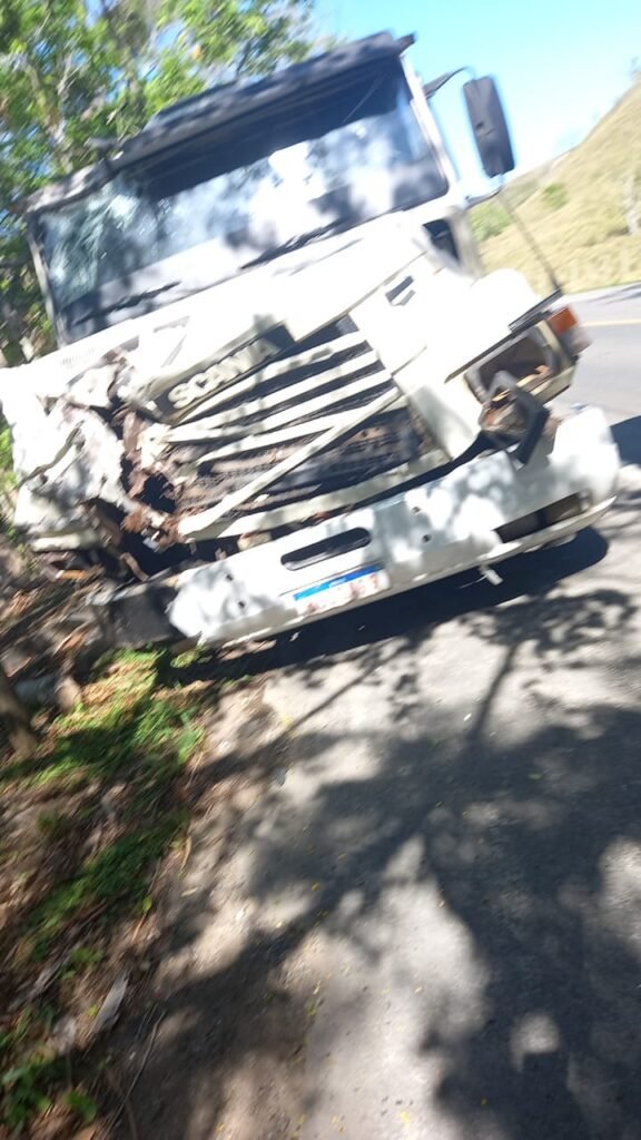 Carreta carregada com roupas tomba após colidir em Itaperuna (RJ)