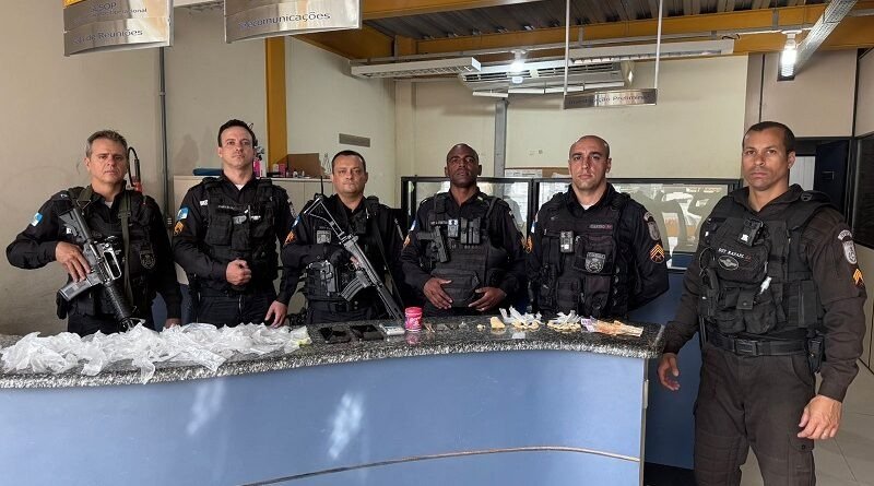 Em seguida, os policiais realizaram a abordagem e buscas no local onde o objeto havia sido jogado. Dentro da sacola foram encontrados sacolés de cocaína, porção de maconha, material para endolação de entorpecentes e uma balança de precisão. Também foram apreendidos dois celulares e uma quantia em dinheiro.