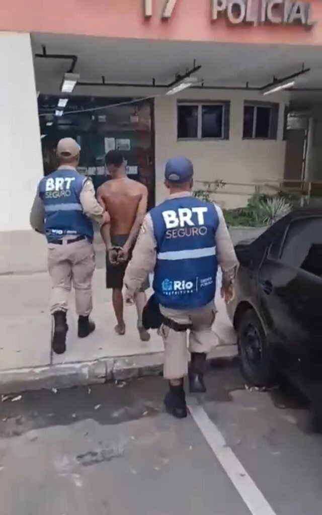 Agentes do BRT Seguro prenderam em flagrante, nesta segunda-feira (21), um homem por furto de grades de contenção na estação do BRT Into, em São Cristóvão, na Zona Norte.