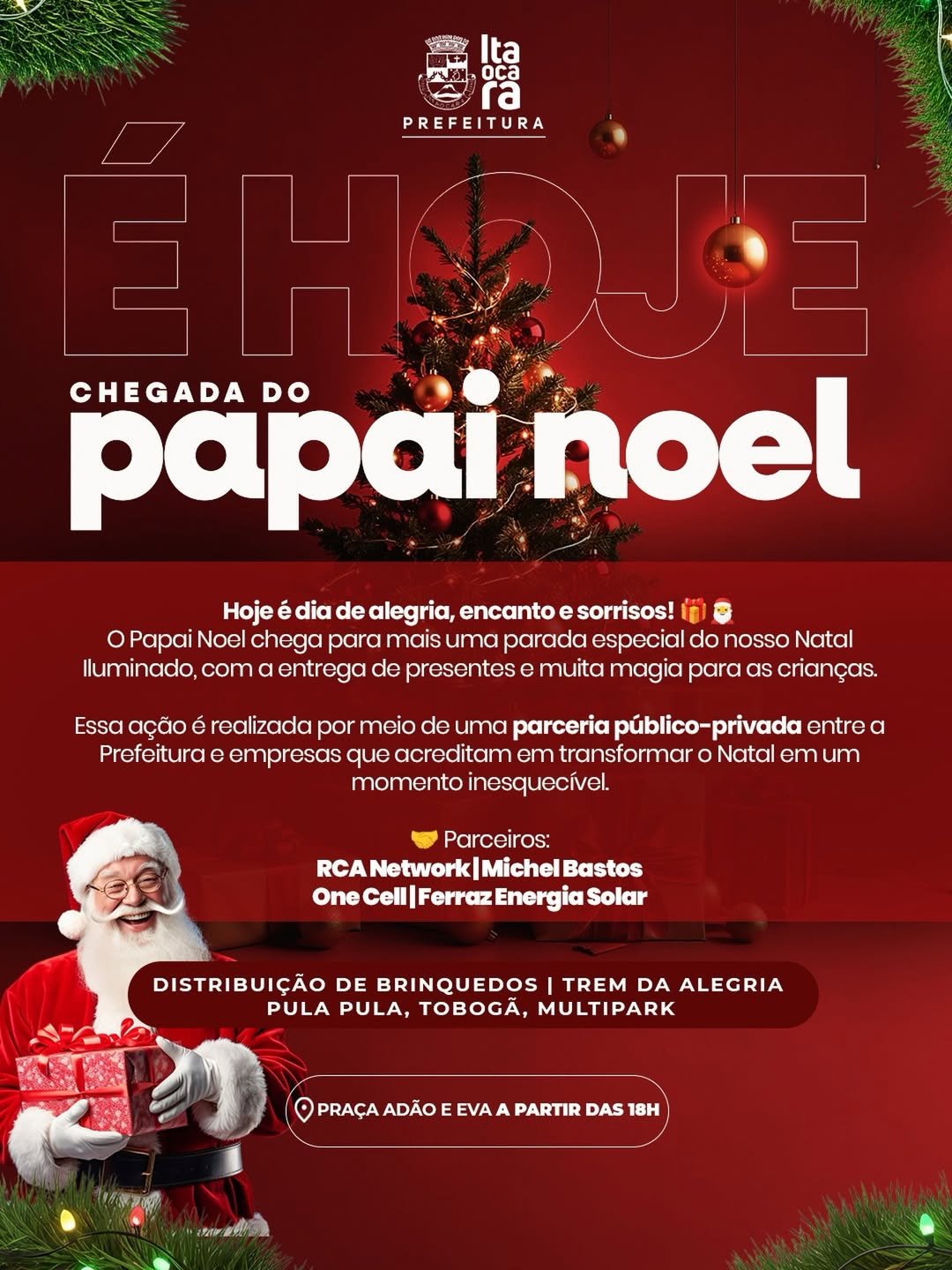 ITAOCARA, RJ — A cidade de Itaocara vive hoje, 23 de dezembro, um dos momentos mais aguardados das festividades de fim de ano: o Natal Iluminado. O evento central acontece na Praça Adão e Eva, a partir das 18h, e promete transformar a noite em uma experiência mágica para as famílias locais.