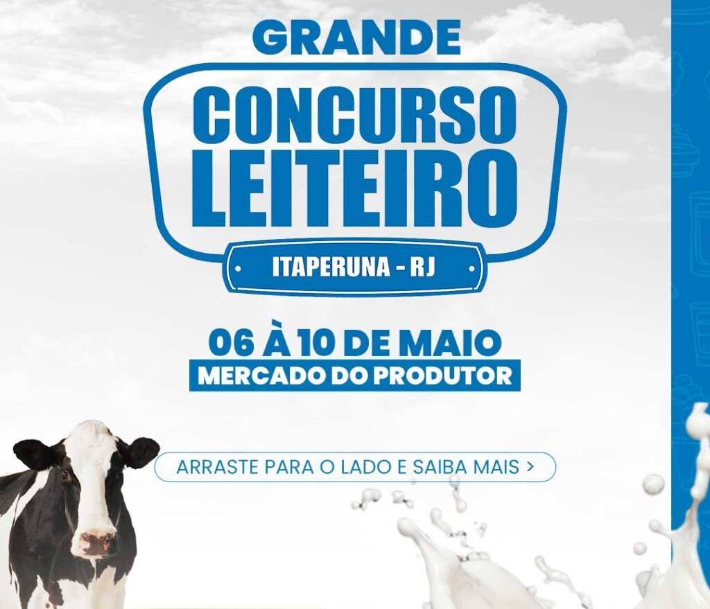 A Prefeitura de Itaperuna confirmou a realização de um dos maiores concursos leiteiros da região, que será sediado no Mercado do Produtor entre os dias 06 e 10 de maio. Com uma premiação total expressiva de R$ 75.000,00, o certame promete reunir o melhor da genética e da produtividade leiteira do Noroeste Fluminense.