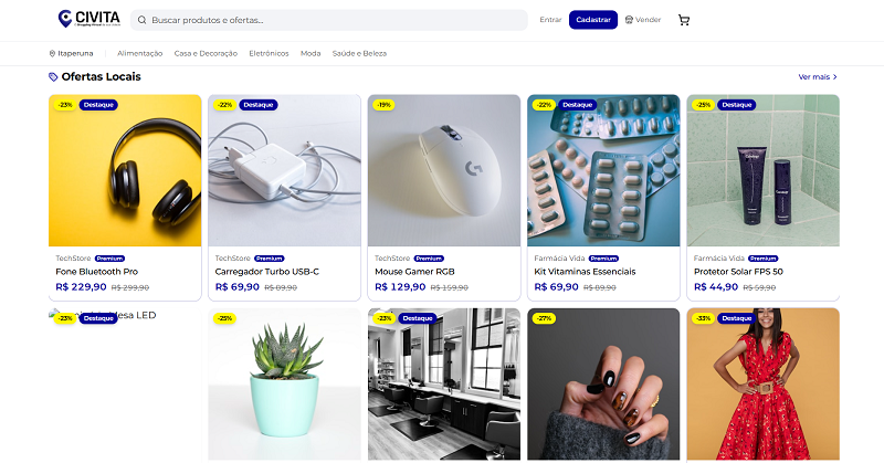 Diferente dos grandes marketplaces globais, a Civita foca na proximidade e no relacionamento direto. A proposta é oferecer aos lojistas uma vitrine virtual onde podem expor produtos e promoções, enquanto o cliente ganha agilidade ao saber exatamente onde encontrar o que procura dentro de Itaperuna.