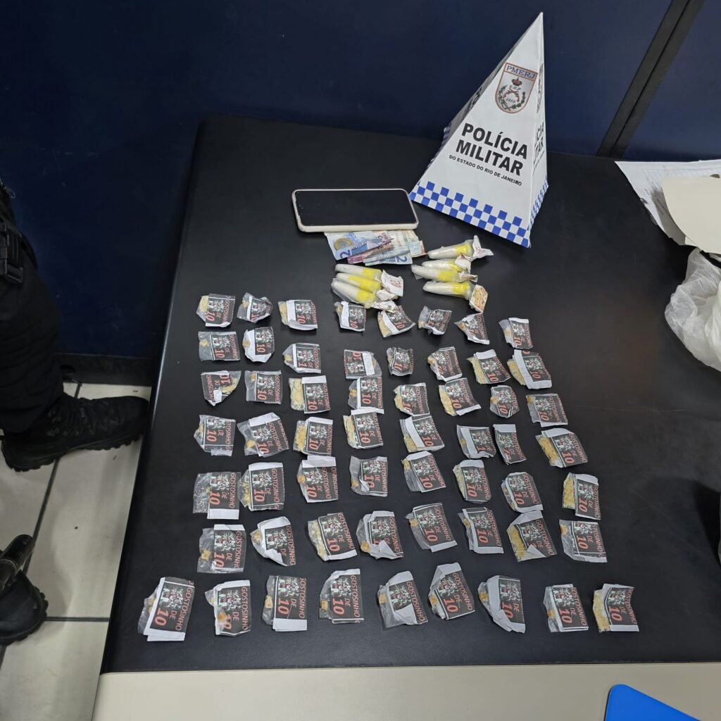 Na tarde desta terça-feira (10), por volta das 13 horas, um suspeito foi abordado pela Polícia Militar quando estava na Rua São Vicente de Paula, Morro do Castelo, Itaperuna.