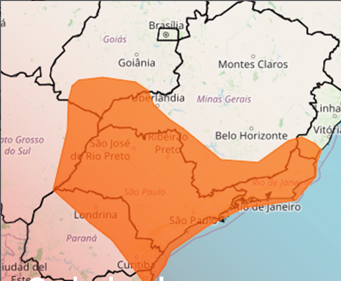O calor deve atingir principalmente os estados de São Paulo, Minas Gerais, Rio de Janeiro, Paraná, Mato Grosso do Sul, Santa Catarina e algumas áreas do Centro-Oeste, além do extremo sul de Goiás.