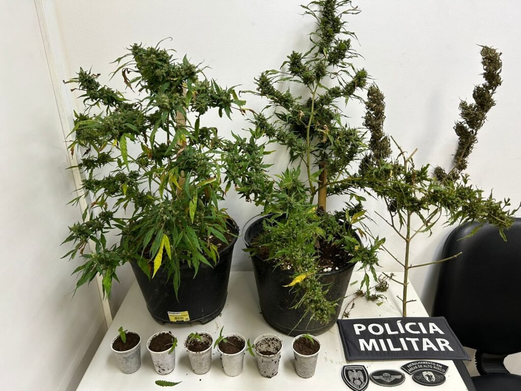 Ao chegarem à residência, os militares realizaram buscas e encontraram três pés de maconha na varanda, além de mais seis mudas da planta.