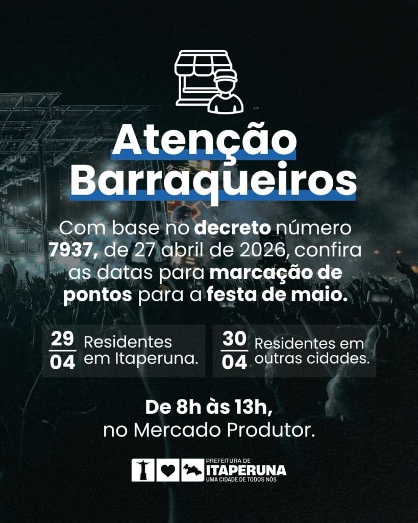 A Prefeitura de Itaperuna oficializou, nesta segunda-feira (27), as diretrizes para os comerciantes e barraqueiros interessados em atuar na tradicional Festa de Maio 2026. De acordo com o novo decreto, a organização definiu datas específicas para o cadastramento, visando otimizar o atendimento e a logística do evento.
