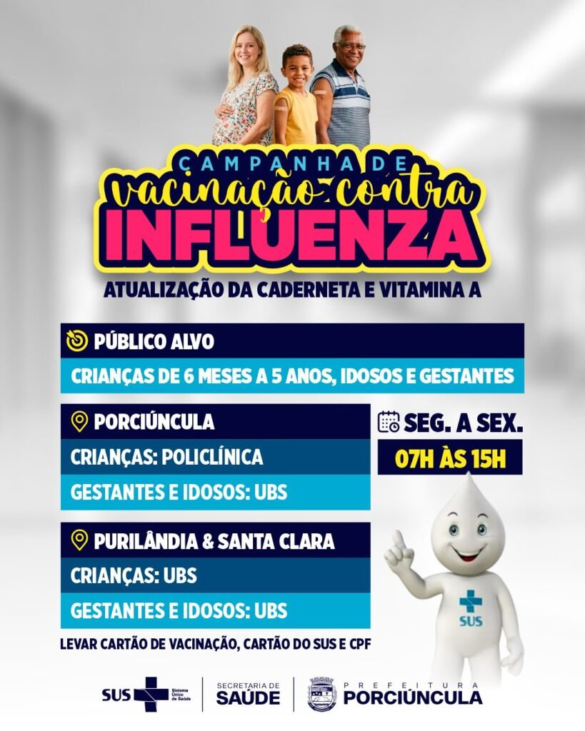 A Prefeitura de Porciúncula, por meio da Secretaria Municipal de Saúde, mantém a oferta da vacina para crianças de seis meses a cinco anos, gestantes e idosos, além da atualização da caderneta de vacinação e aplicação de Vitamina A para o público infantil.