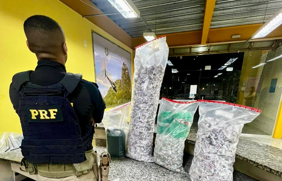 Uma fiscalização de rotina da Polícia Rodoviária Federal (PRF) resultou em uma grande apreensão de drogas na noite desta segunda-feira (17) na BR-116, na Região Serrana do Rio.