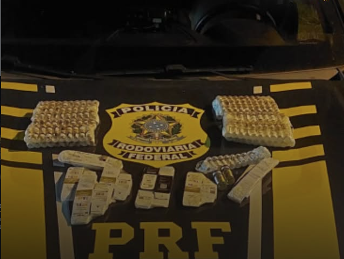 Entre os itens apreendidos estavam ampolas de substância análoga à tirzepatida, popularmente conhecida como “Mounjaro”. Questionado pelos policiais, o condutor afirmou que adquiriu os medicamentos no Paraguai e que o destino final seria o Espírito Santo, onde pretendia revendê-los.