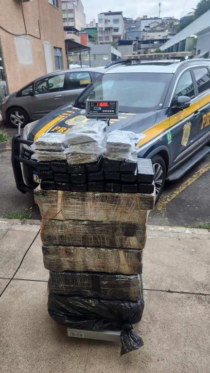 A equipe da PRF abordou um veículo que seguia do interior de São Paulo em direção à Zona da Mata mineira. Durante a fiscalização, os policiais localizaram cinco fardos e 27 tabletes de maconha no porta-malas e no interior do carro.