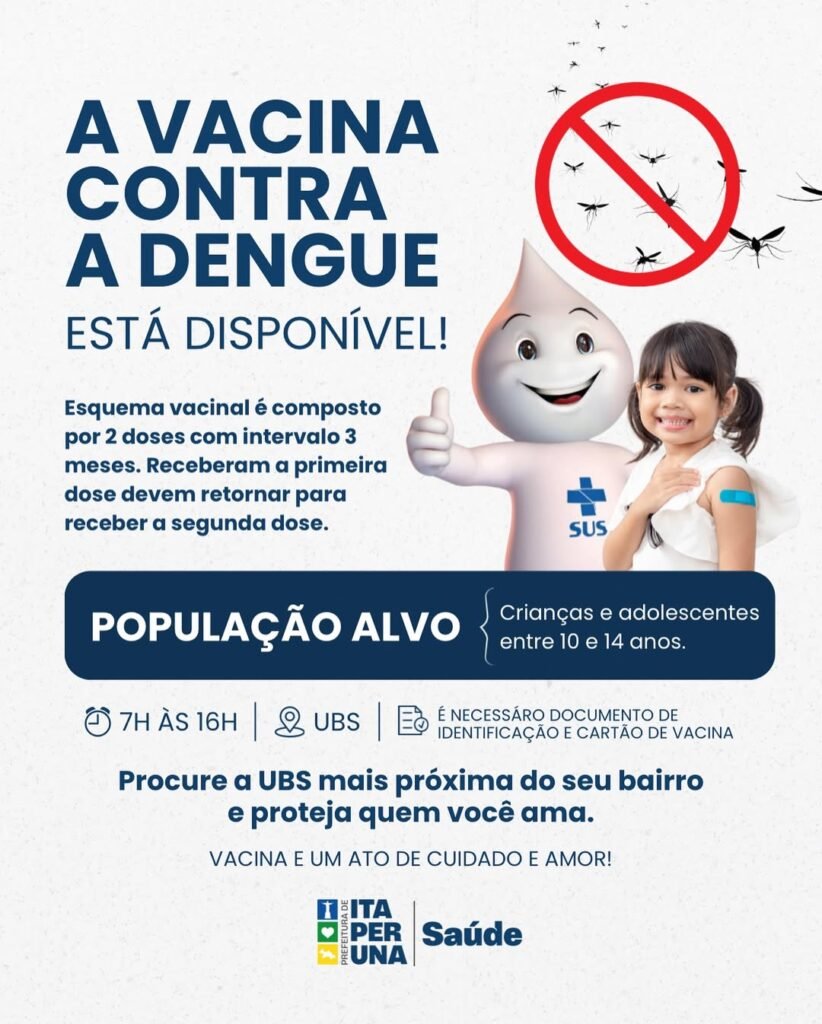 A Prefeitura de Itaperuna, por meio da Secretaria Municipal de Saúde, iniciou a aplicação da vacina contra a dengue em crianças e adolescentes de 10 a 14 anos.